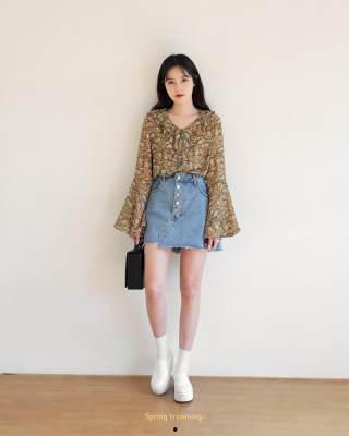 简约风格的牛仔裙,是日韩美女们最爱的款式之一。这种裙子通常以纯色为主,剪裁简约大方,搭配一双小白鞋,就能轻松打造出清新自然的风格。